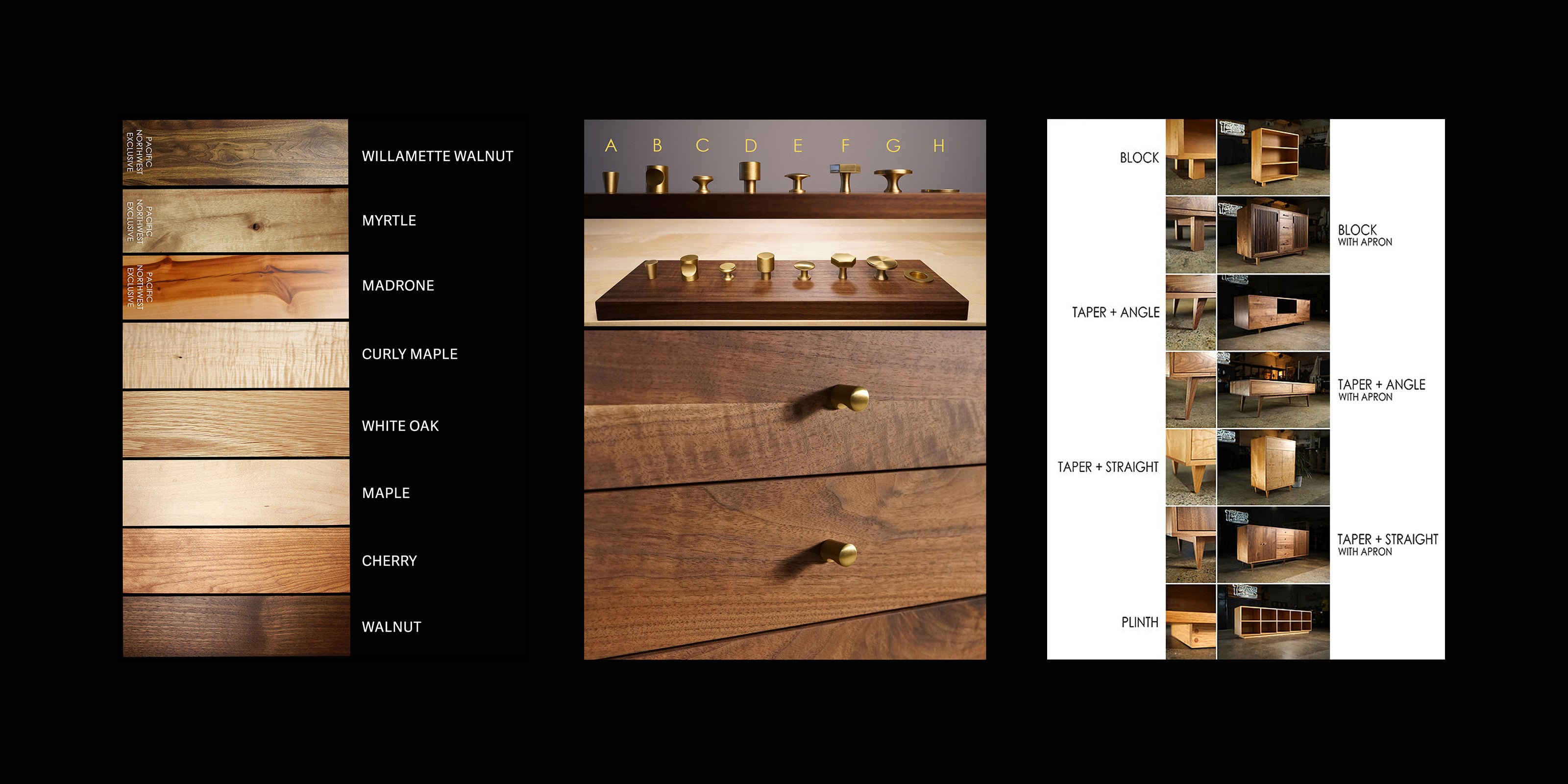 We have a variety of leg and base styles, tapered or straight, to suit your taste and vision for your desired custom furniture piece.