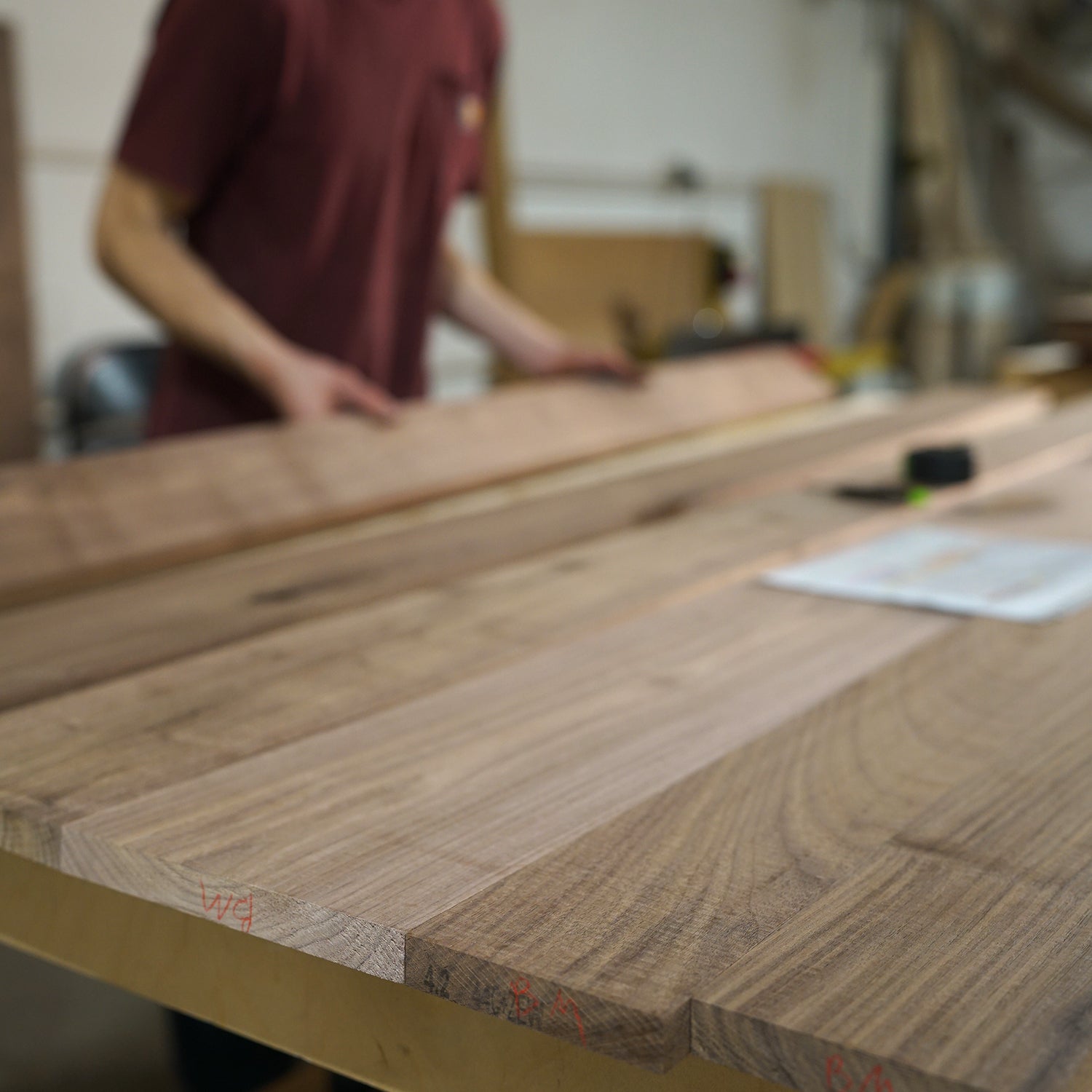 We lean on responsibly sourced domestic hardwood species like Willamette walnut, white oak, maple, cherry, madrone and myrtle.